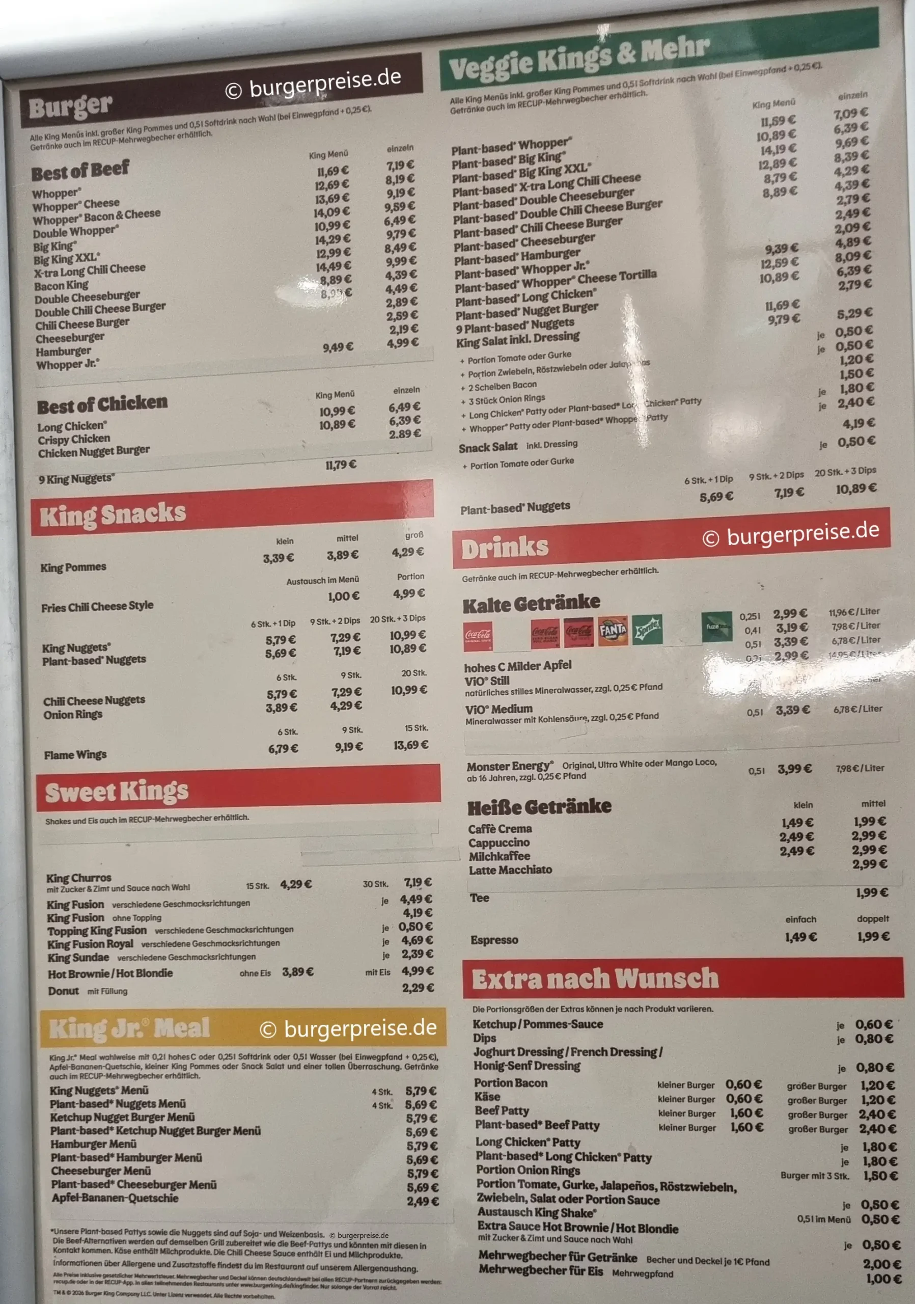 Hier ist ein Foto der Burger King Preise von 2026. Klicke bitte auf das Bild für den Vollbild-Modus: