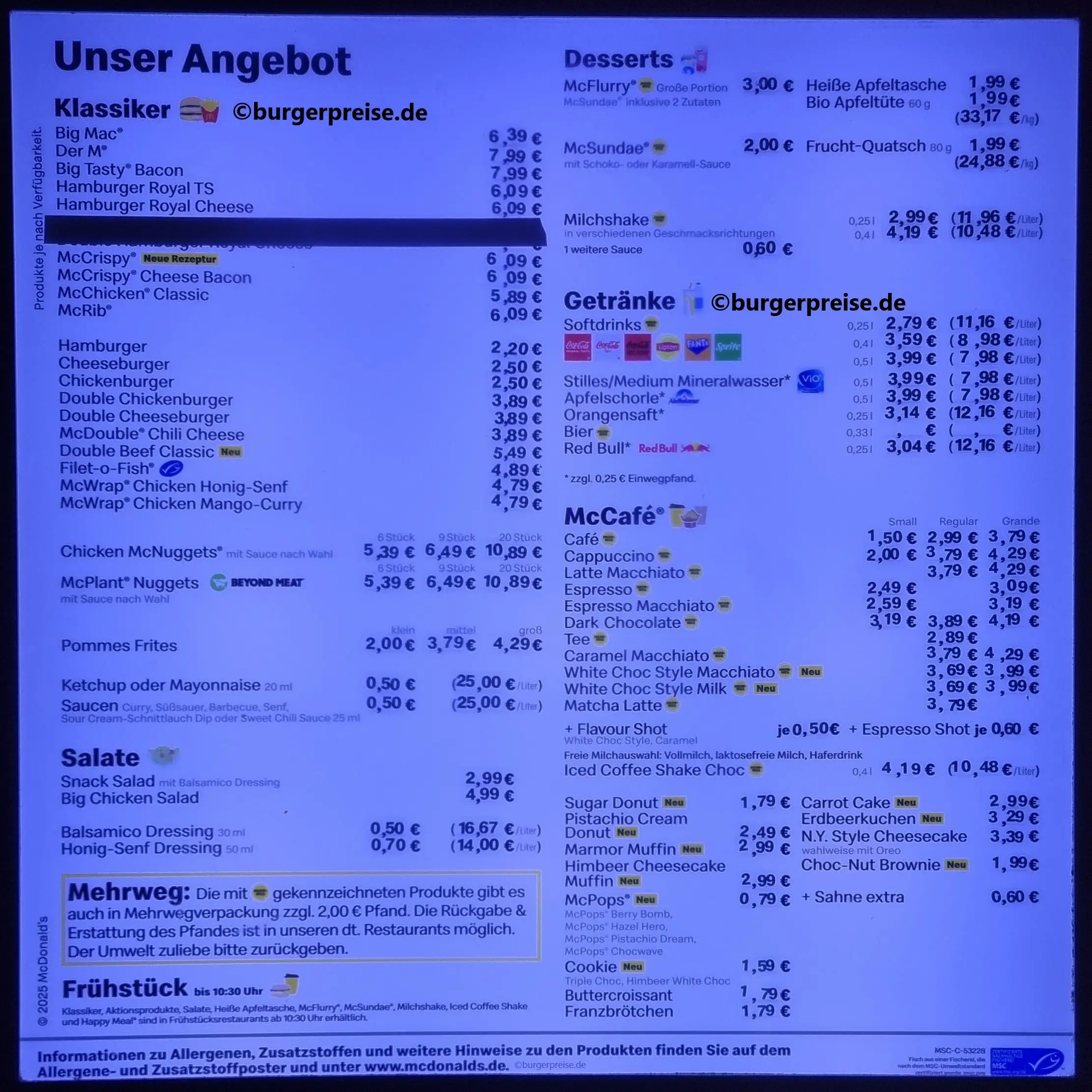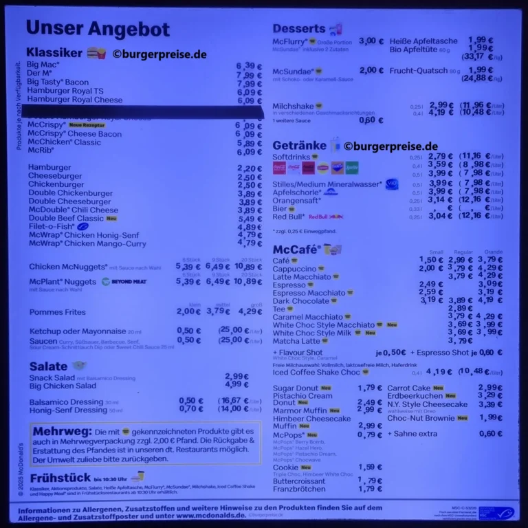 Übersicht Mc Donalds Preise Deutschland 2026.